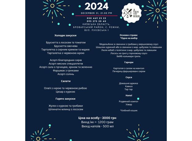 Приготуйтеся відкрити Новий рік в стилі голлівудської вечірки, де кожен момент - це справжня подія! Ласкаво запрошуємо до «Aventurier» - вашого курорту для найкращого відпочинку!